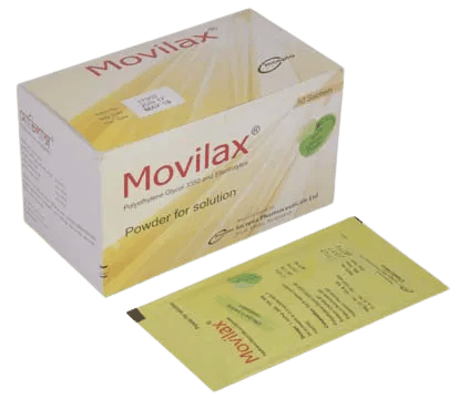 Each sachet of Movilax contains Polyethylene Glycol 3350 USP